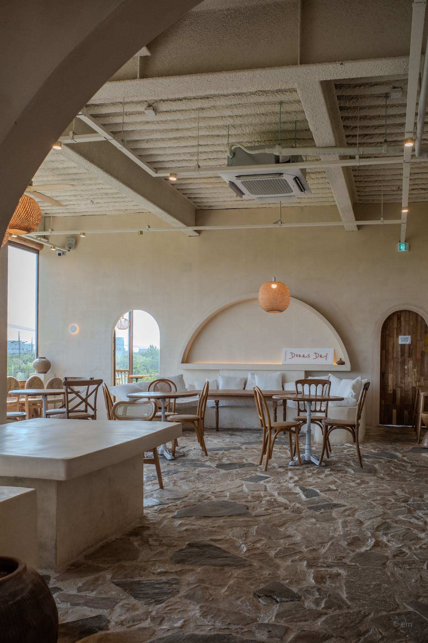 Donas Day didn’t set out to build a vacation. It set out to sell donuts — round, generously dusted, cream-filled things in every colour a donut has any business being. But somewhere between the rooftop pool and the arched whitewashed walls and the cactus standing in terracotta urns against a suburban Seoul skyline, the pastry case became almost incidental. This is the main branch in Omokcheon-dong, Gwonseon-gu, and for a lot of people, it’s the first time Suwon has ever sounded like a destination.