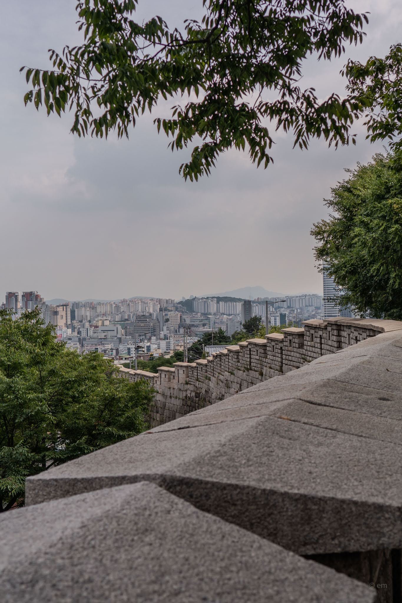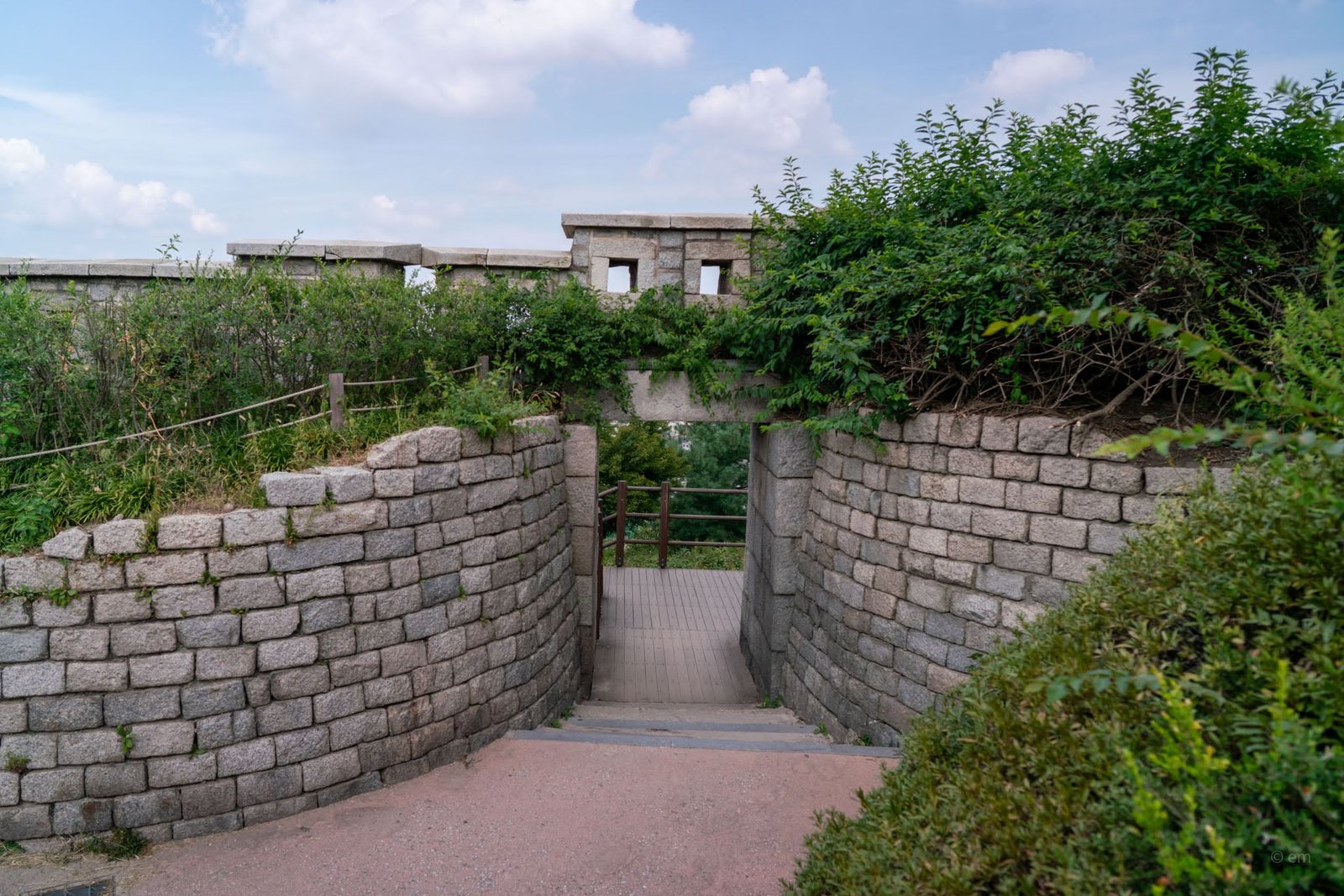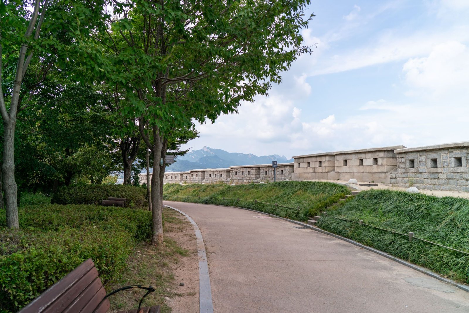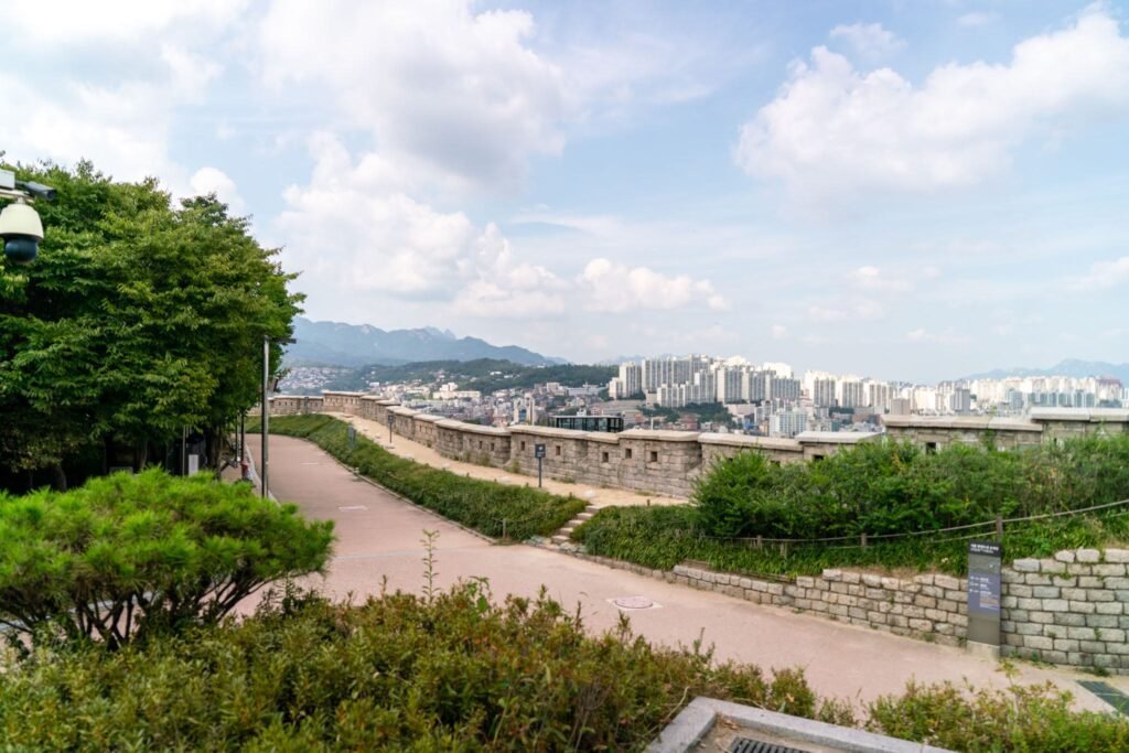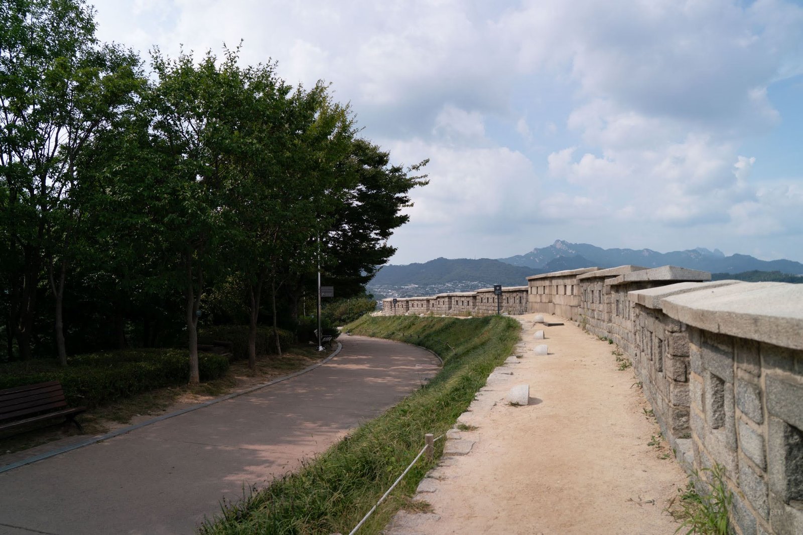 The trail’s open-air quality is unusual for Seoul, not in the sense of green space — the city has parks — but in the sense of exposure. There is no interior, no café threshold, no curation beyond the path itself. The wall is simply here, and has been, and the city has grown up around it without quite absorbing it. That persistence is its own kind of presence.