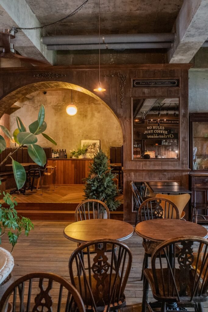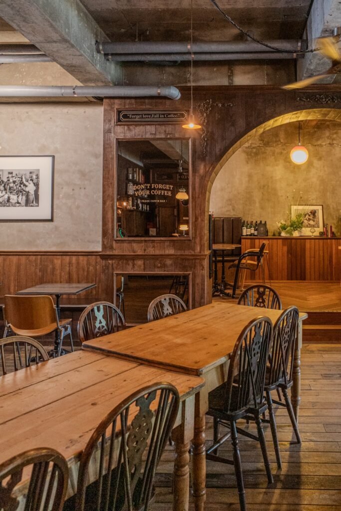 What’s notable is that the atmosphere doesn’t dilute as the chain grows. Rather than using mass-produced furniture, the brand supplies high-end vintage pieces centrally from its headquarters, which is why each location reads as a genuine sibling of the others rather than a faded copy. The dark wood, the mismatched chairs, the antique cabinets — they travel from city to city, adjusted to the building but never watered down.