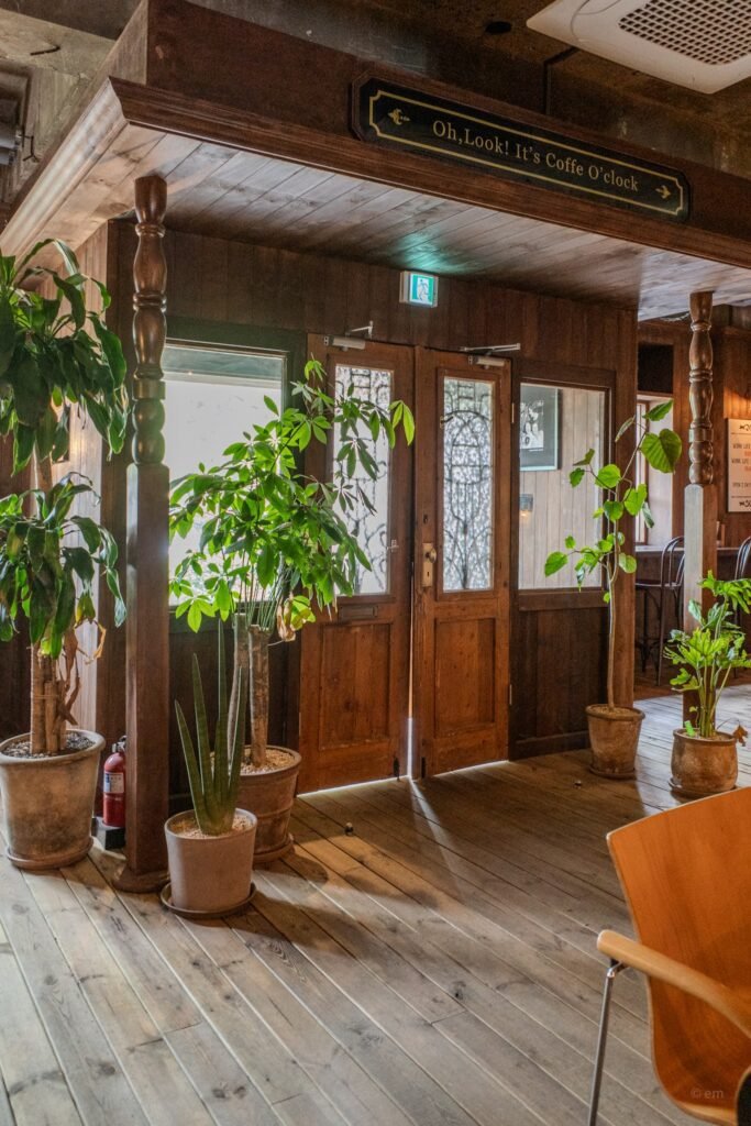 The contrast between these two zones — the moody saloon and the bright greenhouse entrance — is one of the café’s quiet tricks. You can choose your atmosphere.